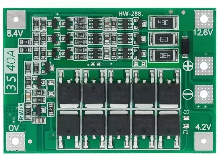 Плата BMS Li-ion 3S 12.6V 40A (HW-288) застосовується для захисту та балансування збірок літій-іонних акумуляторів.
