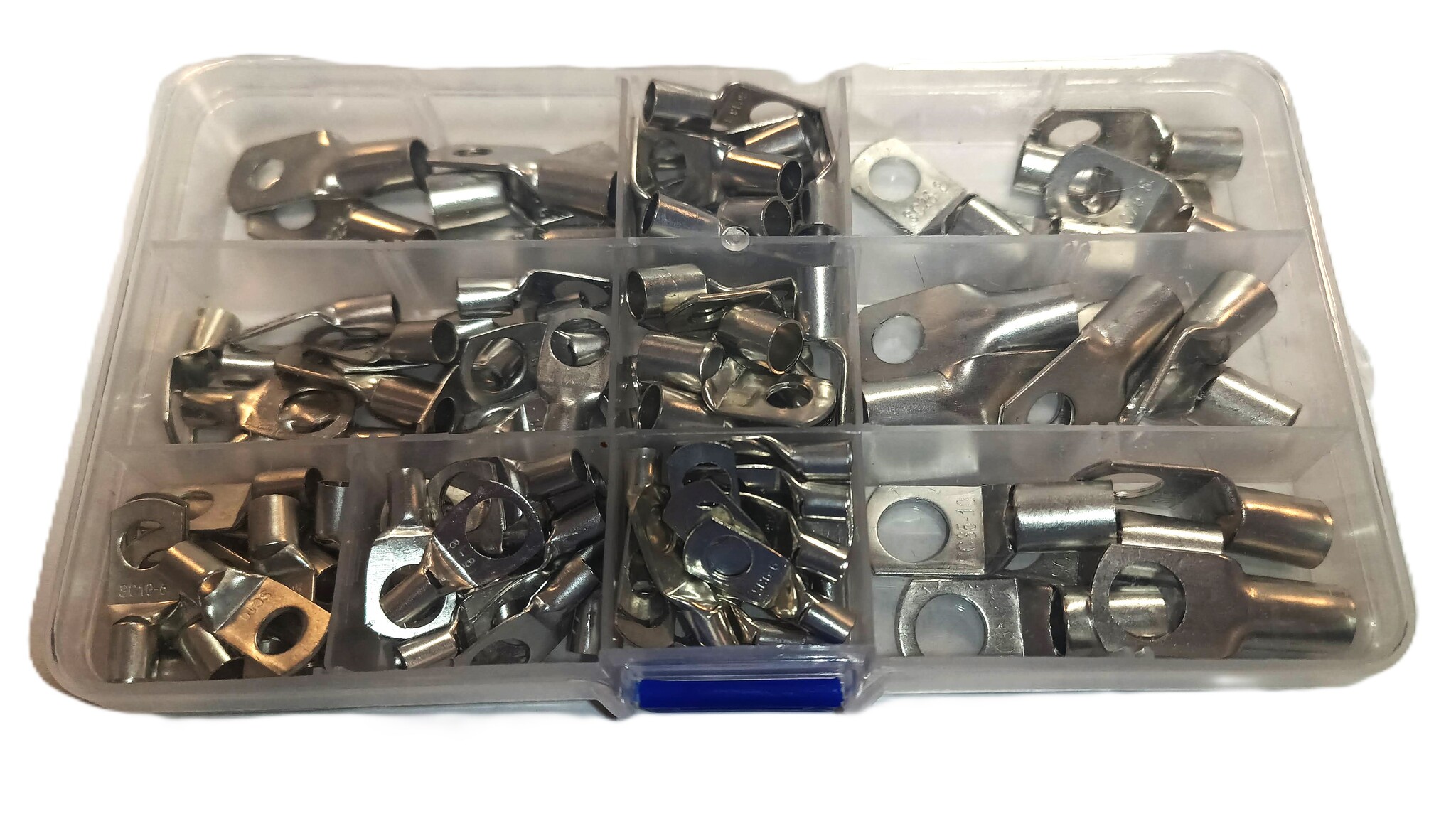 В наборі сто луджених кабельних наконечників з міді SC для окінцювання жил силових електричних кабелів під болт.