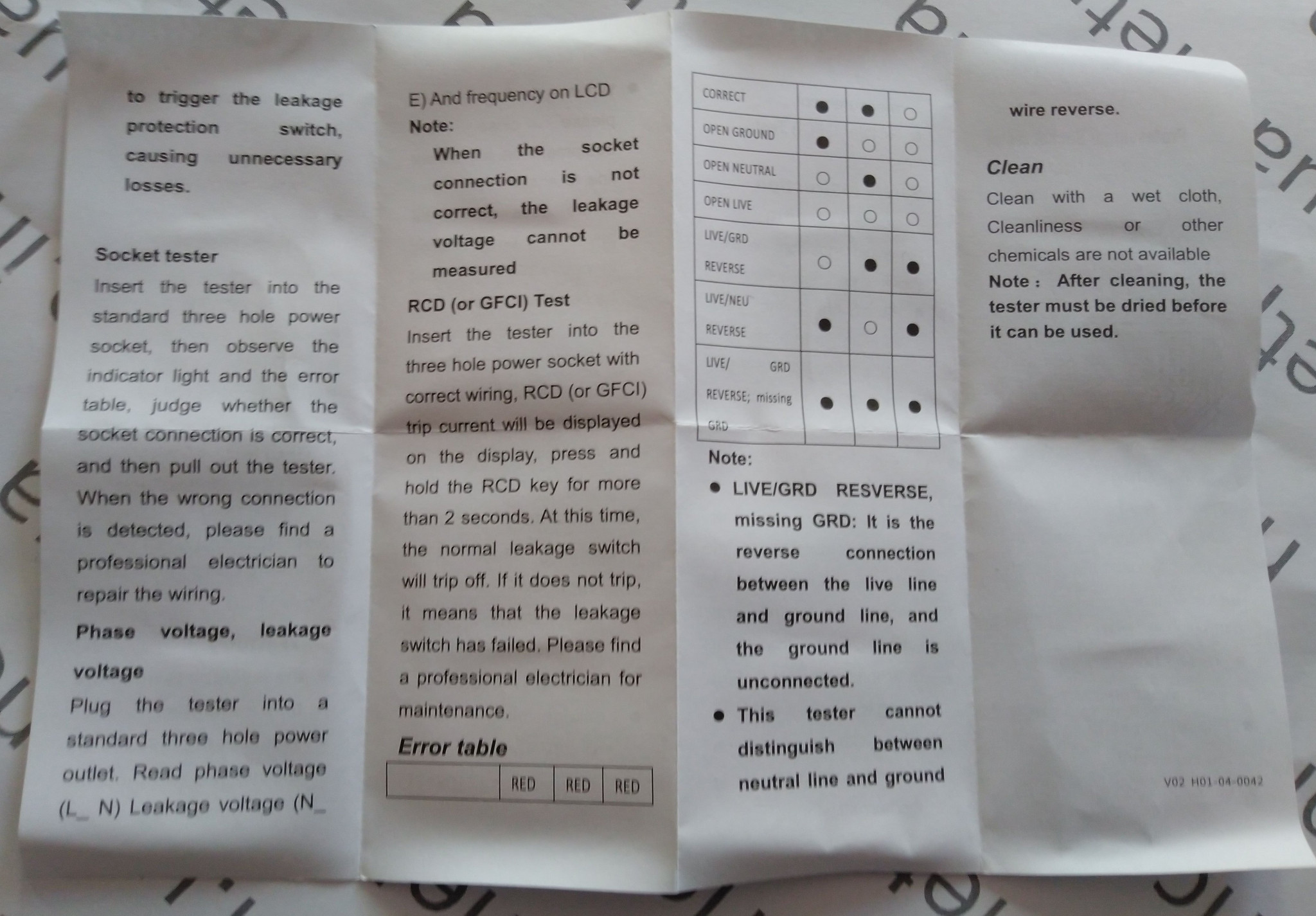 6 варіантів світлодіодної індикації, що вказує на стан підключення проводів до розетки або їх обриву. Вимірювання напруги між фазою та нулем а також нулем та землею.